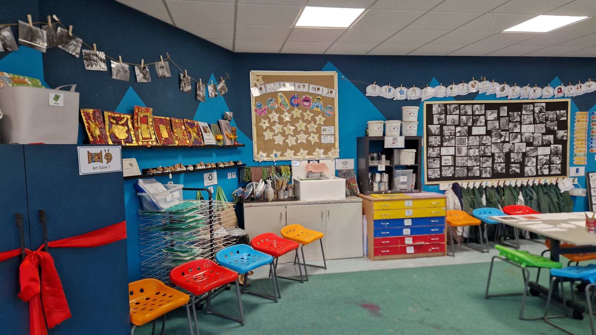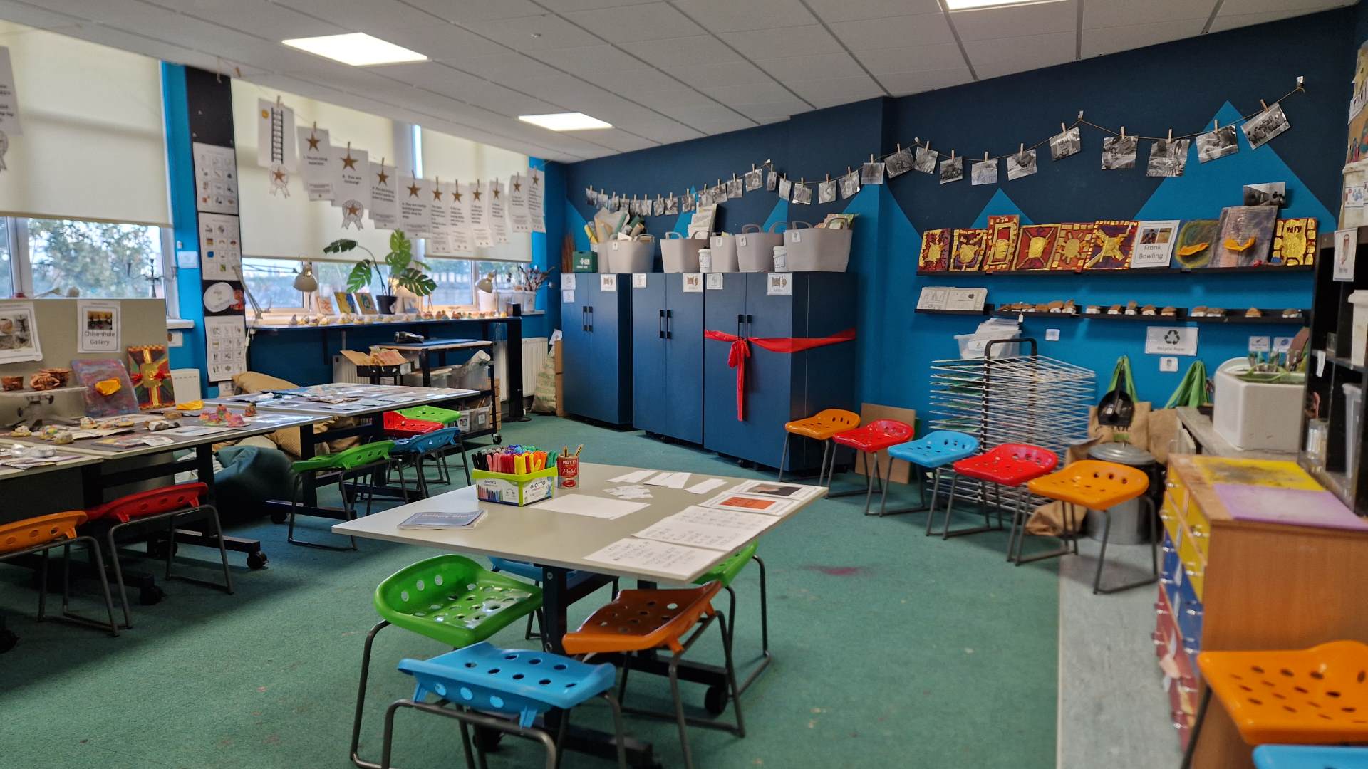 The improvements were made possible by a vital grant from the Goldsmiths’ Centre, which funded new art benches, stools and bespoke storage. The modular storage bespoke units were created in partnership with Rigg, whose designs have produced a sensory-rich environment that supports different learning styles and needs.