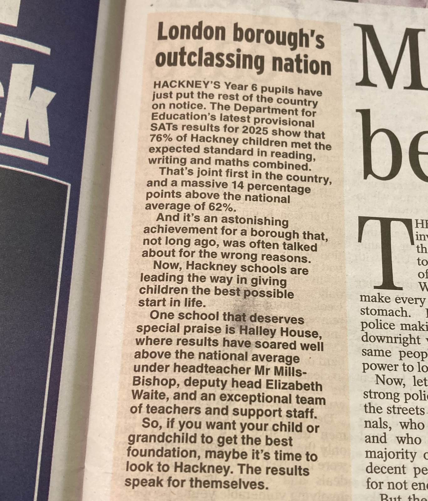 Our pupils' results contributed to Hackney’s achievement, with 76% of Year 6 pupils across the borough meeting the expected standard in all three subjects, placing Hackney joint first in the country.
